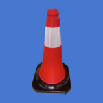 The cone features a bright orange or red body with a white reflective collar to ensure it is easily seen by drivers and pedestrians during both day and night or in lo-light conditions.