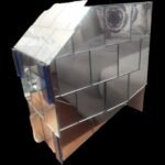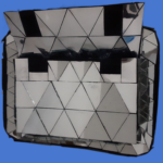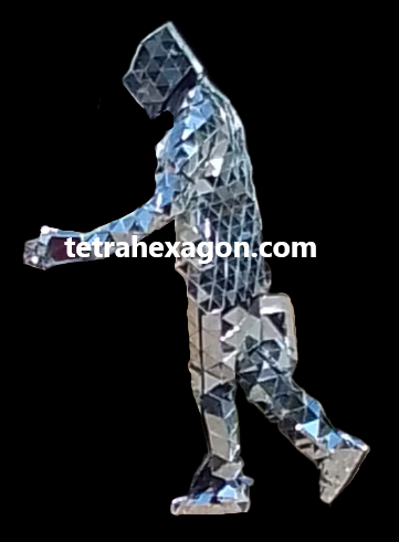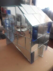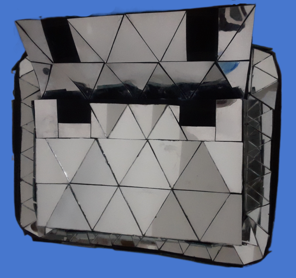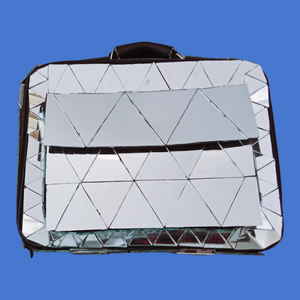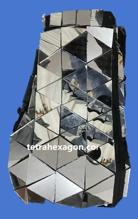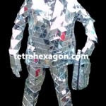 This magnifique mirror robotic costume is made up of glass mirrors, plastic mirrors and flexible mirrors consisting of;